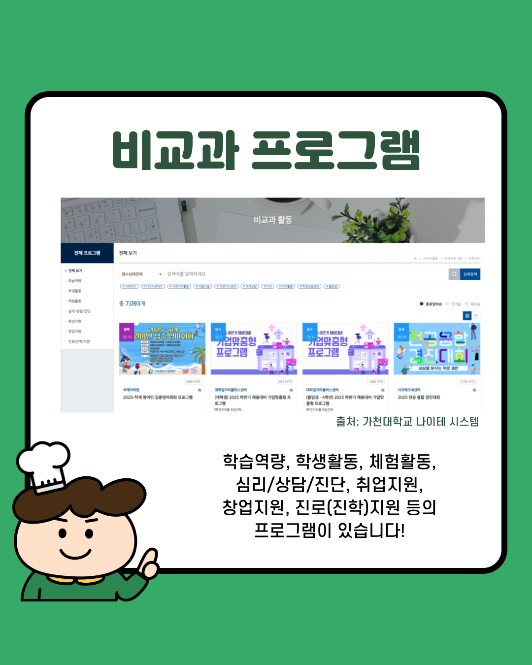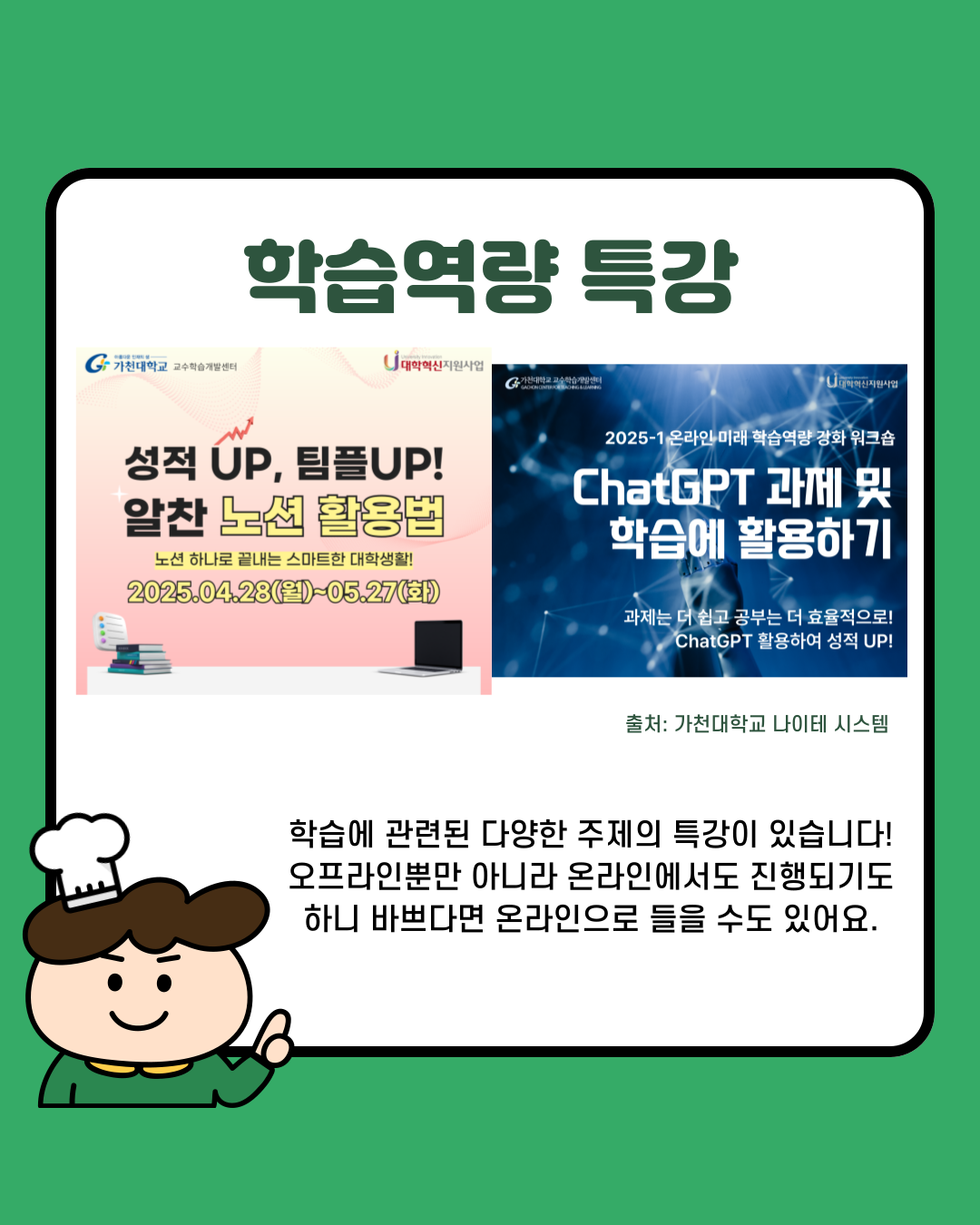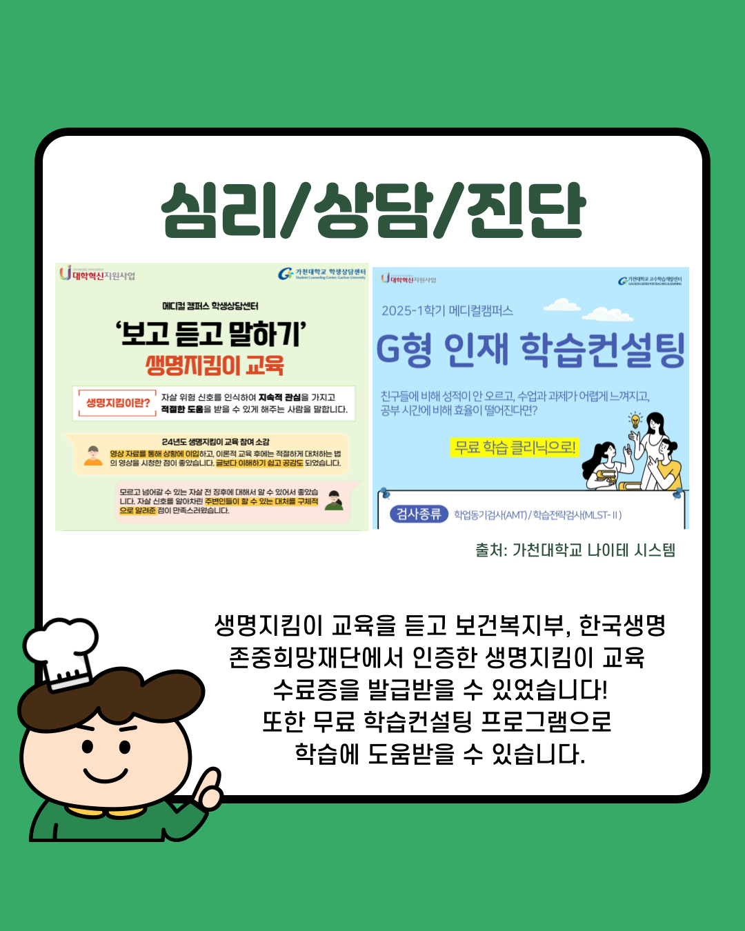 #가천대 #비교과 #취업지원 #특강 #학습역량 #심리 #상담 #진단 #교내공모전