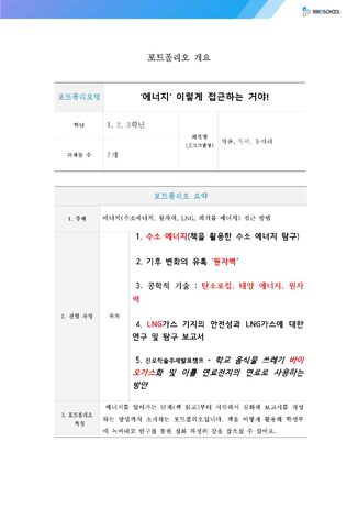 에너지를 알아가는 단계(책 읽고)부터 시작해서 심화해 보고서를 작성하는 방법까지 소개하는 포트폴리오입니다. 책을 어떻게 활용해 학생부에 녹여내고 연구를 통한 심화 과정의 감을 잡으실 수 있어요.