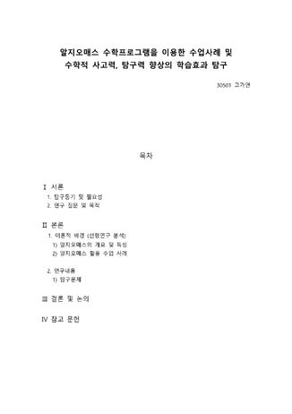 2. 알지오매스 수학프로그램을 이용한 수업사례 및 수학적 사고력, 탐구력 향상의 학습효과 탐구
