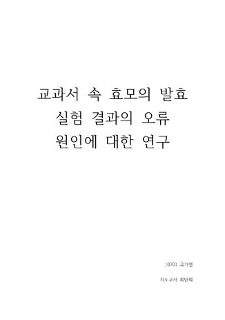 1. 교과서 속 효모의 발효 실험 결과의 오류 원인에 대한 연구
