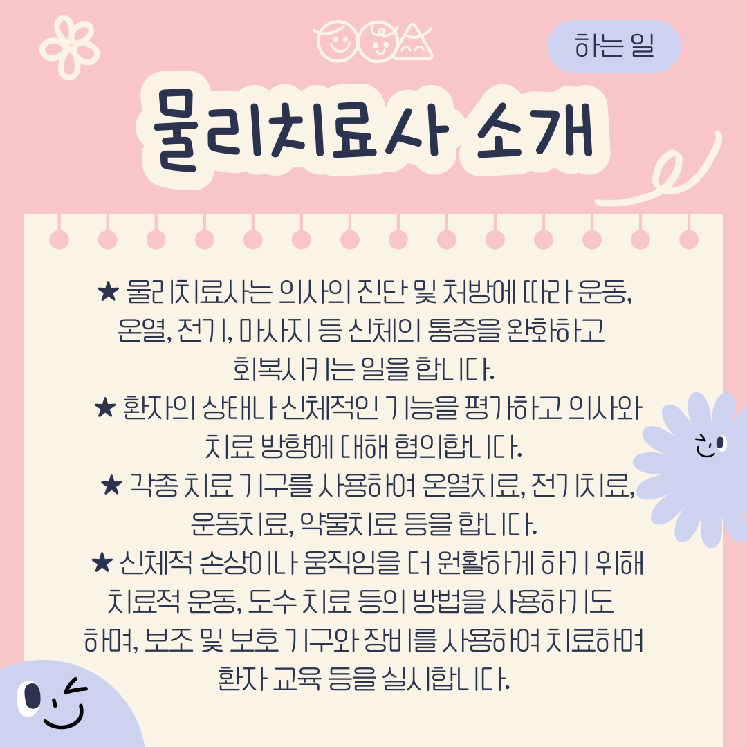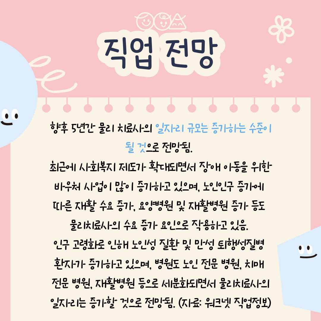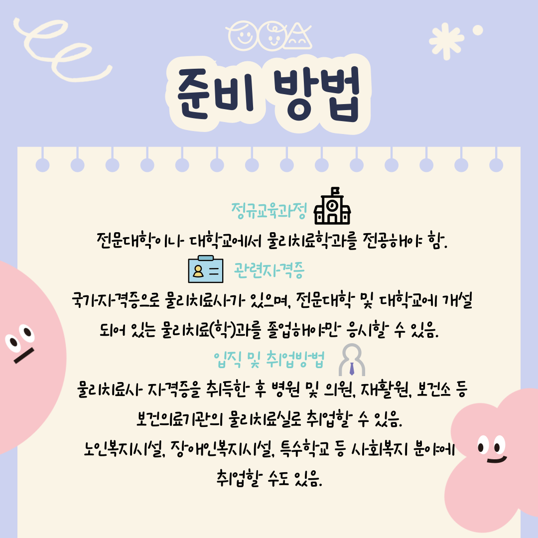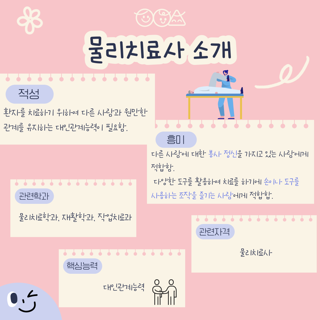 #직업특징 #흥미적성 #물리치료학과 #재활학과 #작업치료과 #물리치료사준비방법 #물리치료사직업전망 #물리치료사직업만족도