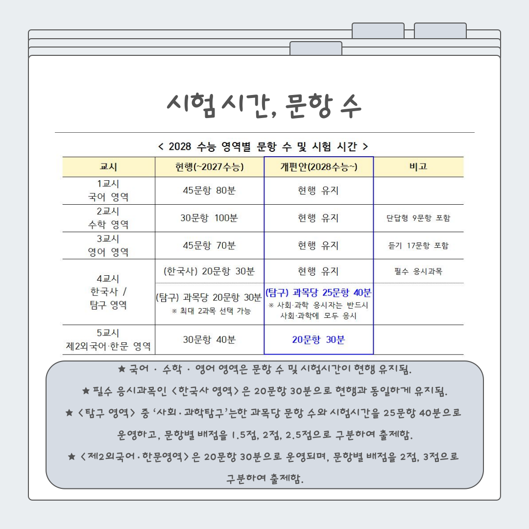 #2028수능 #2028수능달라지는점 #2028정시 #수능선택과목폐지 #2028수능시간표