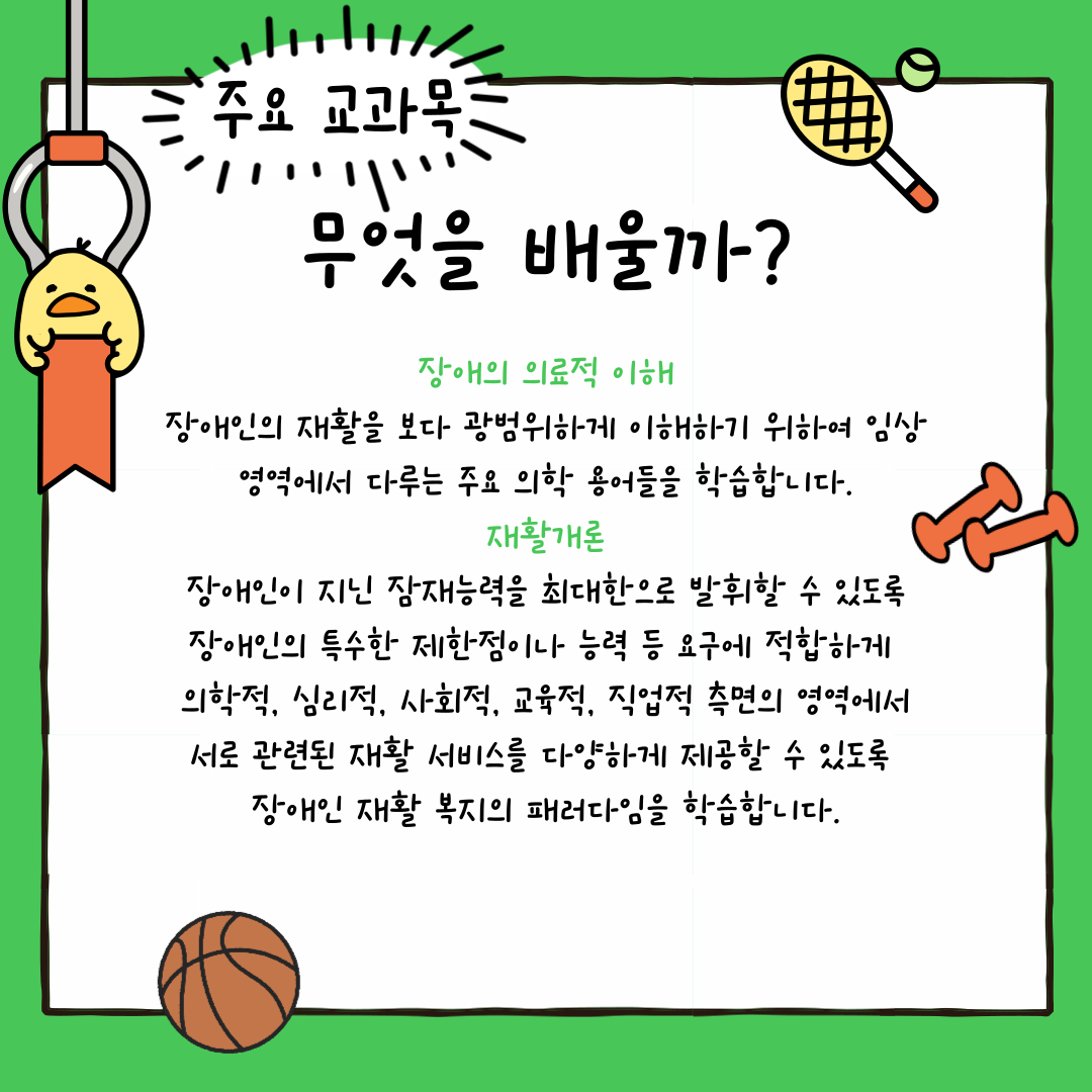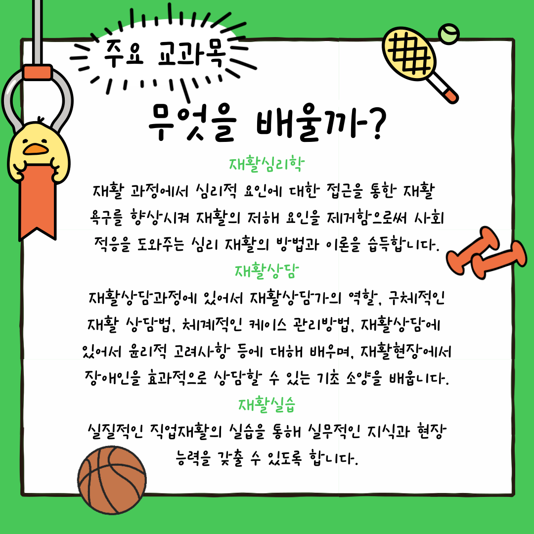 #학과특성 #교육과정 #졸업후진로 #적성추천 #물리치료사 #작업치료사 #특수교육교사 #복지전문가 #재활전공 #보건계열