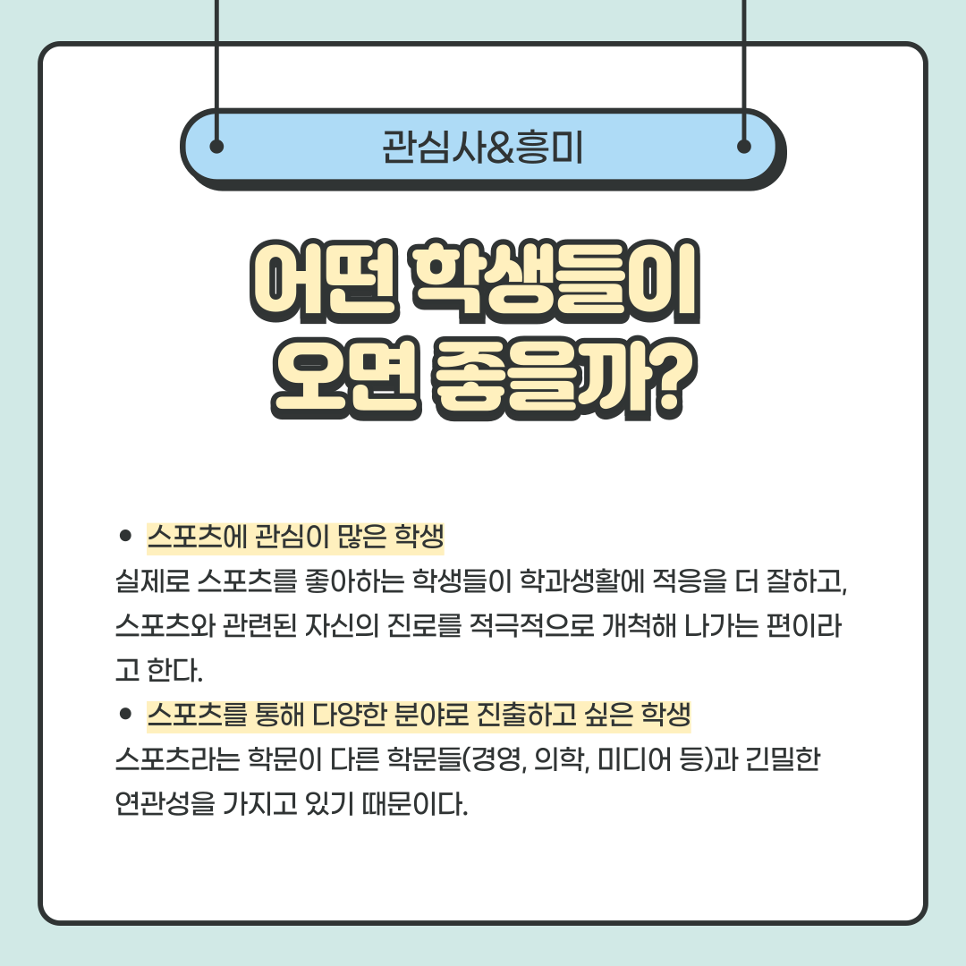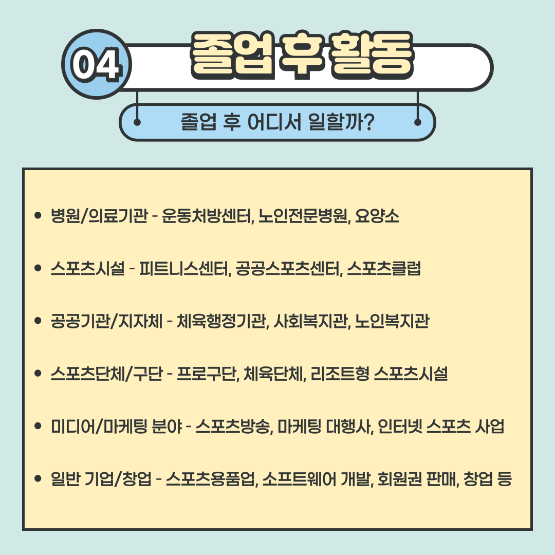 #학과특성 #교육과정 #졸업후진로 #적성추천 #진로탐색 #체육관련진로 #스포츠마케팅 #퍼스널트레이너 #스포츠경영