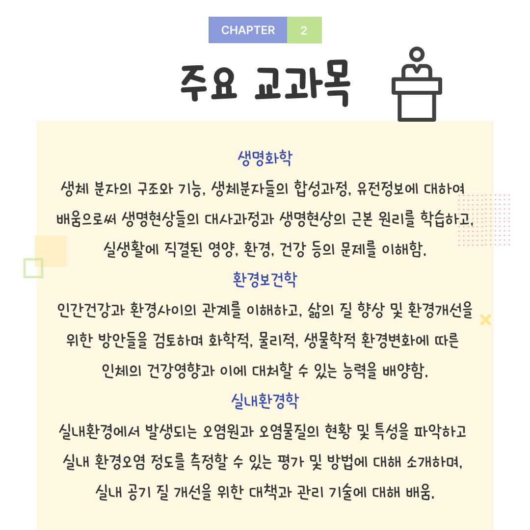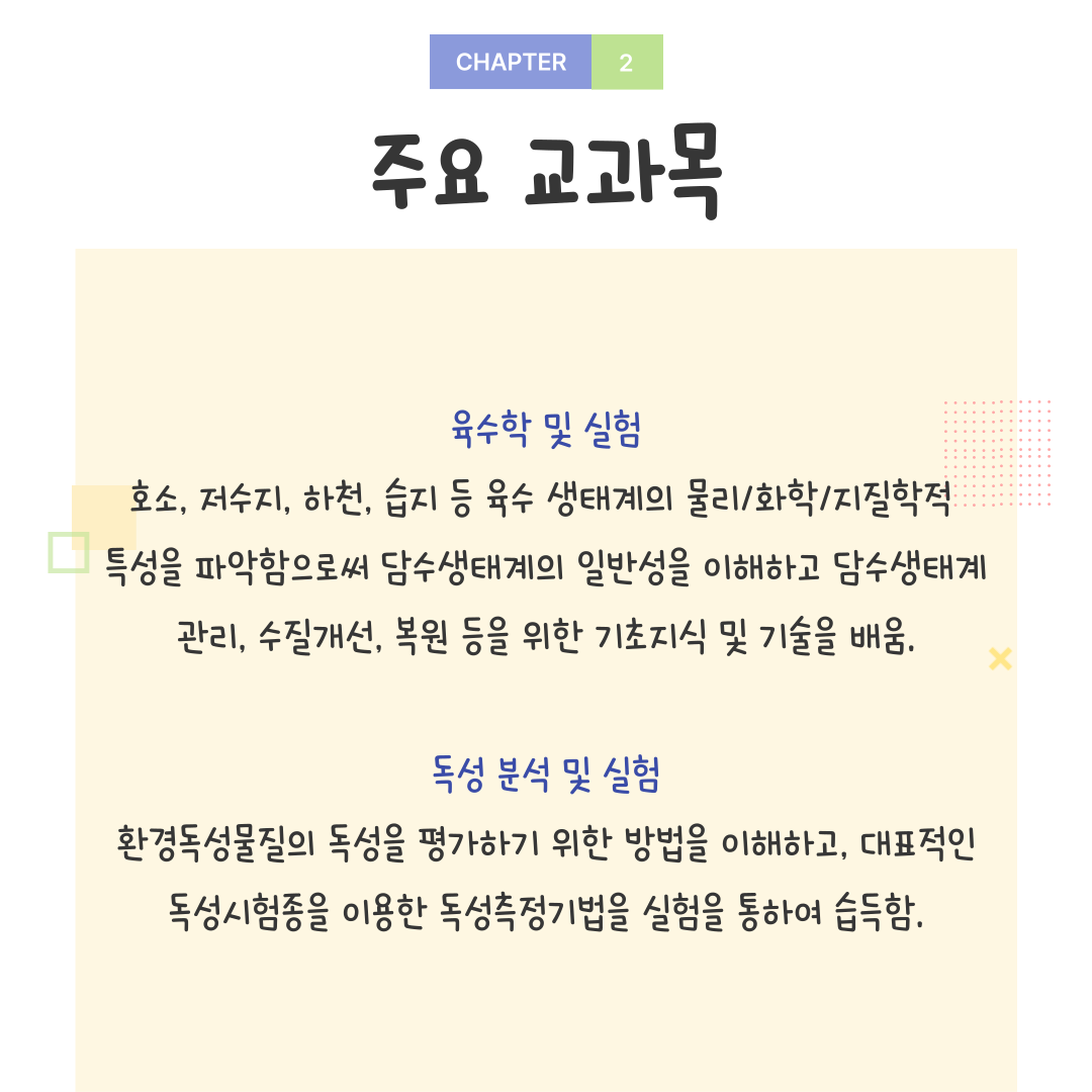 #학과특성 #교육과정 #졸업후진로 #적성추천 #진로탐색 #환경관련진로 #생명화학 #수질환경기사