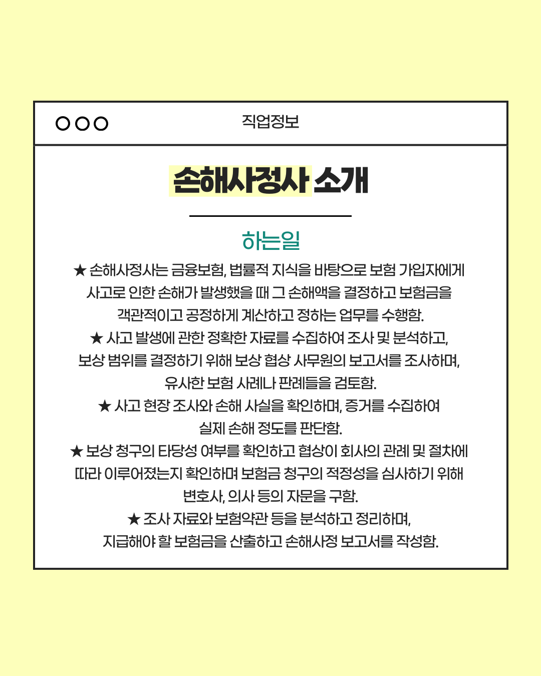 #손해사정사 #관련자격증 #직업전망 #관련학과 #핵심능력