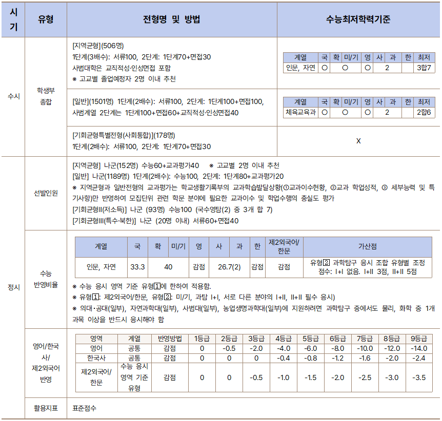 <표 3> 2026학년도 서울대학교 대입 전형 기본 사항