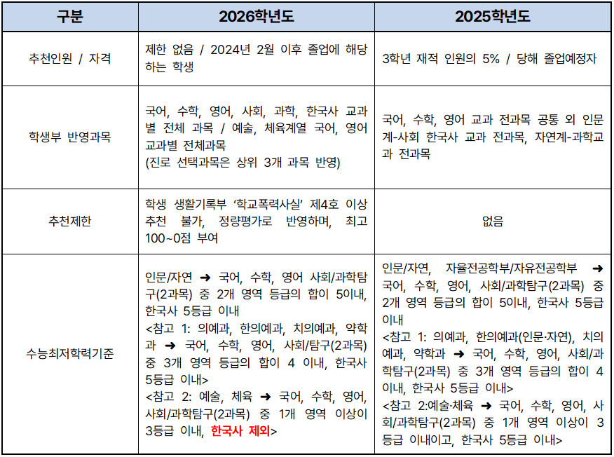 ※ 추천 인원: 제한 없음(단, 학교생활기록부 학교폭력처벌 4호 이상 처분 받은 학생은 추천 불가)