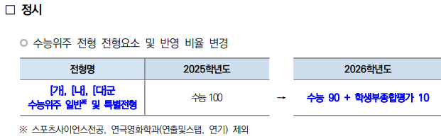 <그림 1> 한양대학교 정시 전형 변경 사항
