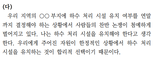 <그림 4> 예시문항 24~27번 지문 (가), (나), (다)의 첫 문장 | ||