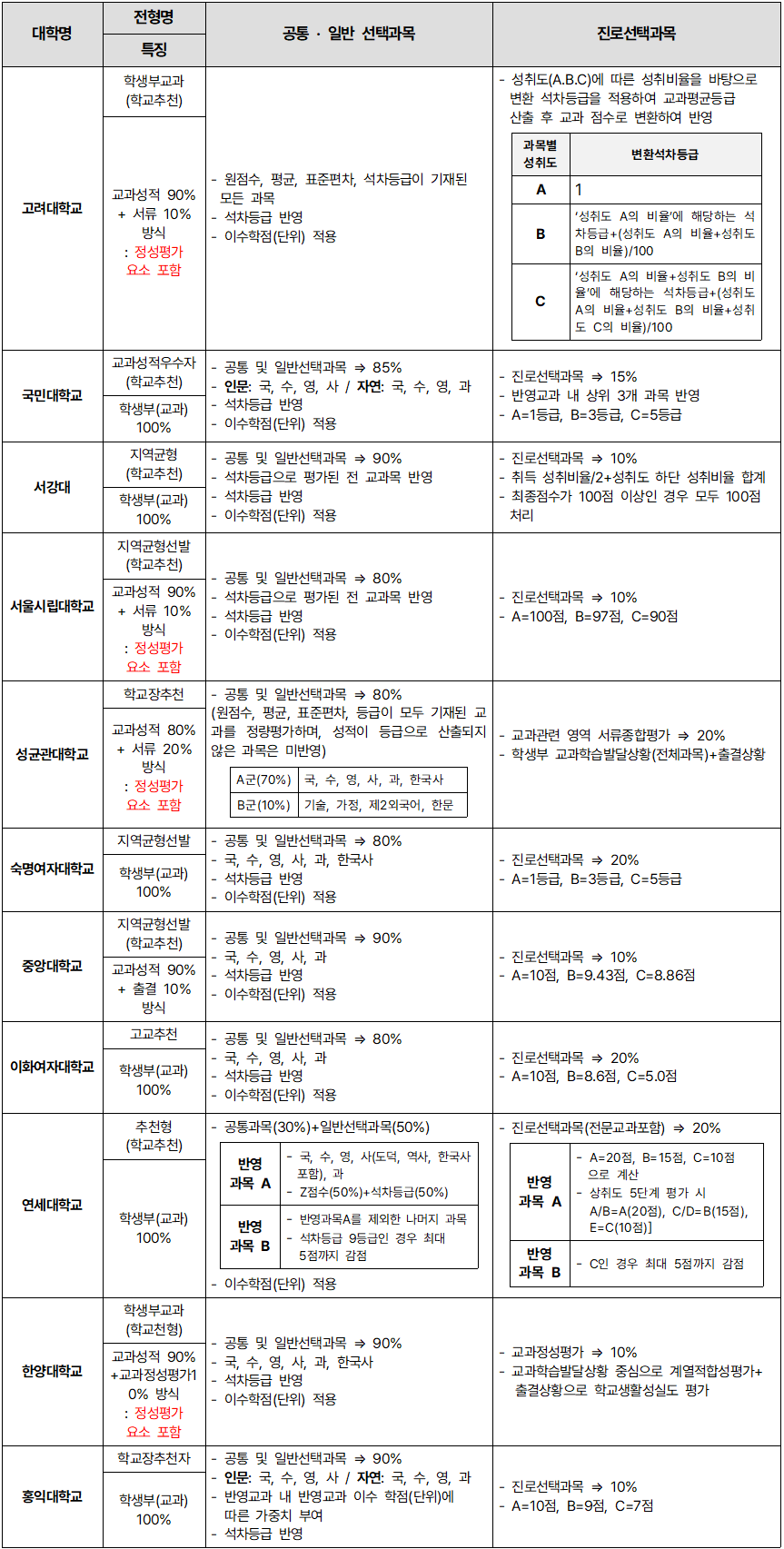 한편, 전 학년 성적을 동일하게 반영한다고 해서 대학별 환산 결과가 모두 같아지는 것은 아닙니다. 대학마다,