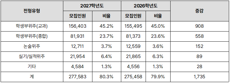 2027학년도 각 대학별 대하입학전형 시행계획 주요사항 참고