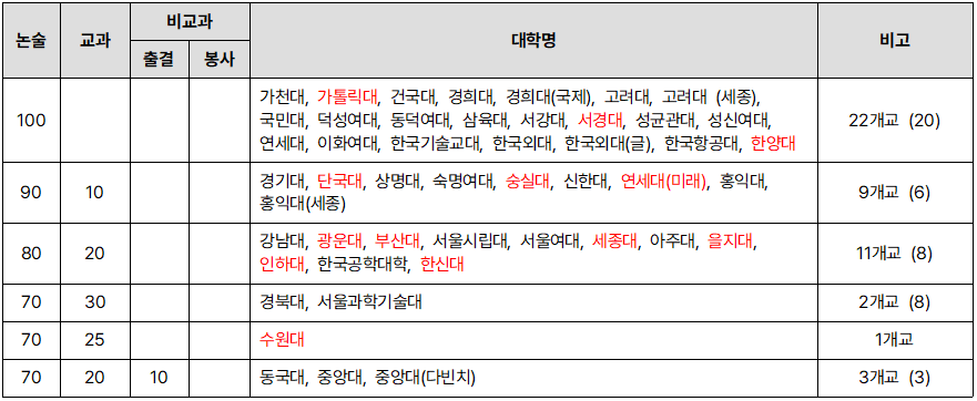 <표 3> 논술 전형 논술 및 교과 비율