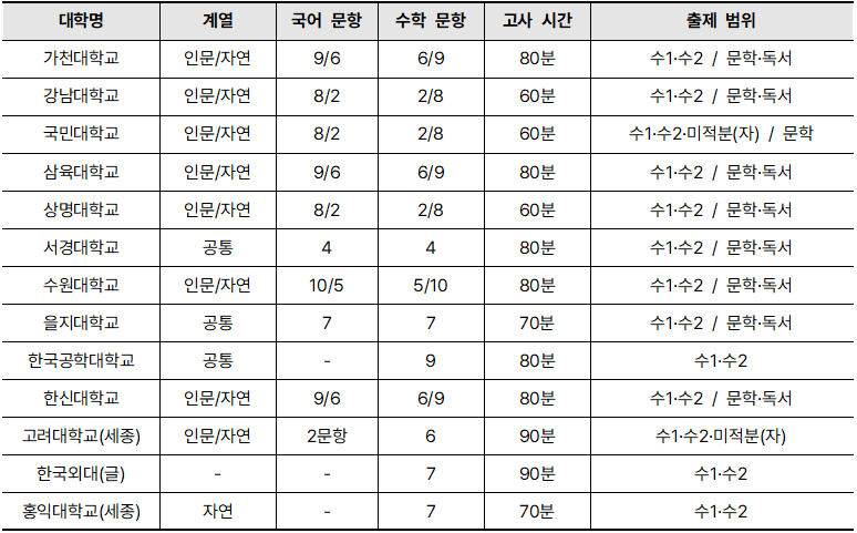 <표 3> 2026학년도 약술형 논술 대학별 문항 수 및 출제 범위