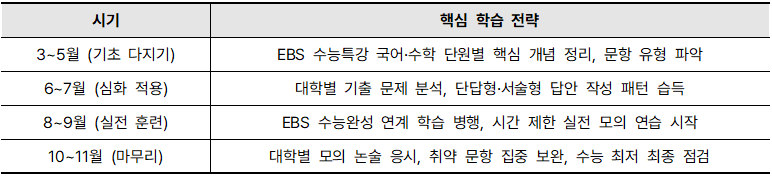 6.6. 시기별 맞춤 준비 전략 — 수능과 '같이' 준비하는 것이 핵심