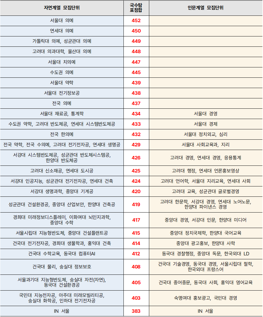 하지만 여기서 가장 경계해야 할 것은, 전체 응시 비율만 보고 자신의 선택을 성급하게 바꾸는 일이다. 확률과 통계와 사회탐구 쏠림이 강해졌다고 해서, 상위권 대학과 모집단위의 합격 구조까지 똑같이 움직인다고 단정할 수는 없다. 의약학 계열과 최상위권 자연계 모집단위에서는 여전히 미적분·기하와 과학탐구 선택 비율이 높게 유지될 가능성이 크다. 이유는 분명하다. 해당 모집단위가 요구하는 학업 역량 자체가 여전히 그 과목들에 유리한 구조로 되어 있고, 일부 대학은 지금도 미적분이나 과학탐구 선택자에게 가산점을 부여하고 있기 때문이다. 결국 “다들 확통과 사탐으로 간다”라는 말만 믿고 따라가는 선택은 위험하다. 같은 점수대에서는 가산점 몇 점이 실제 합격을 가르는 경우가 적지 않다. 선택과목은 비율이 아니라 자신의 성취 수준, 학습 성향, 목표 대학의 반영 방식, 희망 모집단위의 성격을 함께 놓고 판단해야 한다.