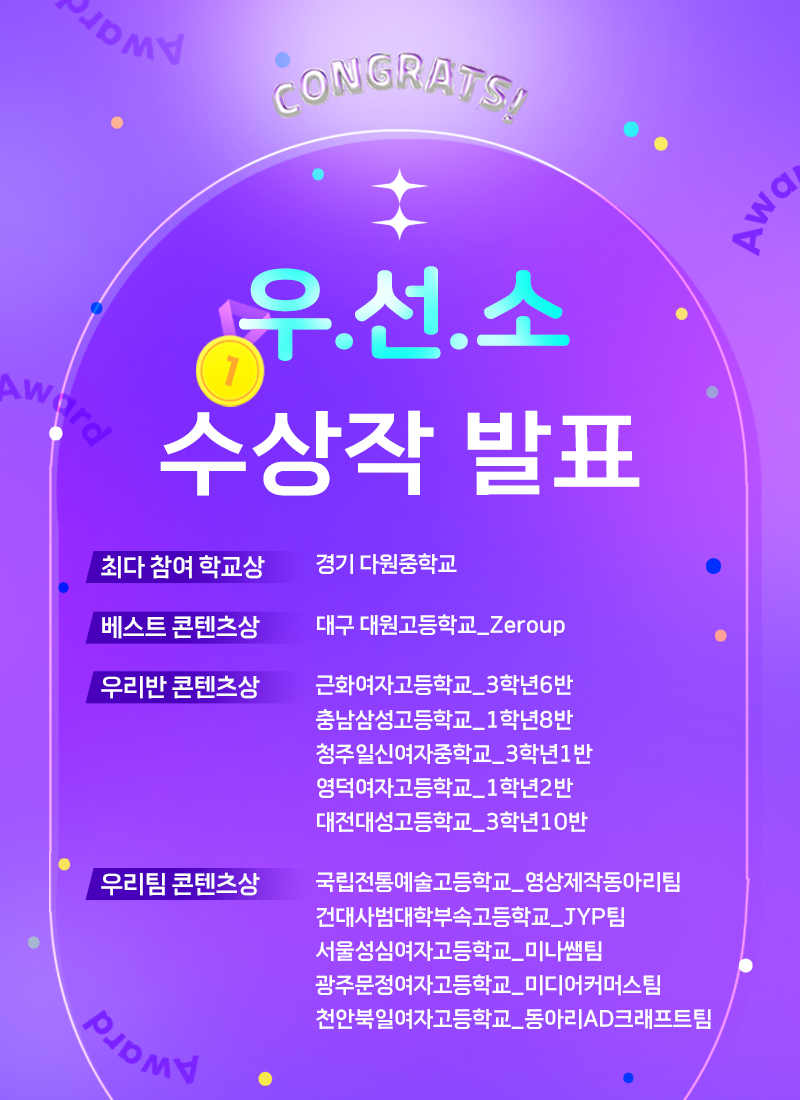 [우리반 콘텐츠상]과 [우리팀 콘텐츠상]은 각 5팀씩 선정되었습니다.
