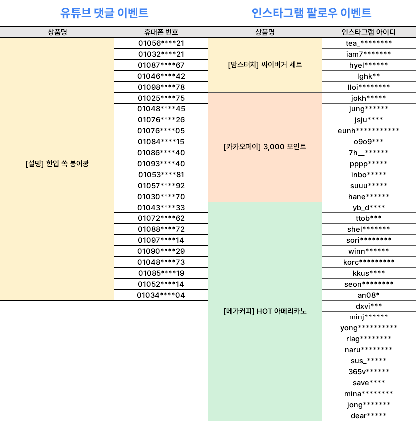 2025년 6월 진행된 인스타그램&유튜브 이벤트 당첨자를 공개합니다!