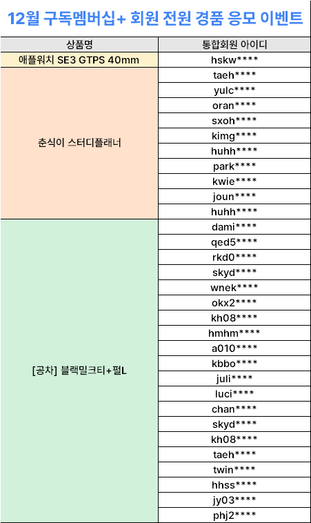 2025년 12월 진행된 구독멤버십+ 회원 전원 경품 응모 이벤트 당첨자를 공개합니다!