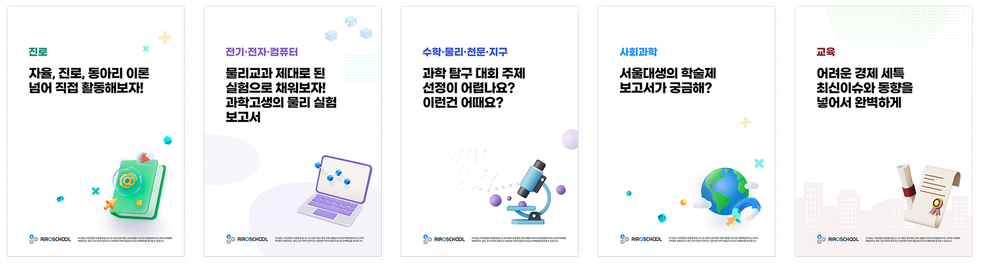 리로스쿨 인증 멘토들이 직접 업로드한 탐구보고서를 매일 새롭게