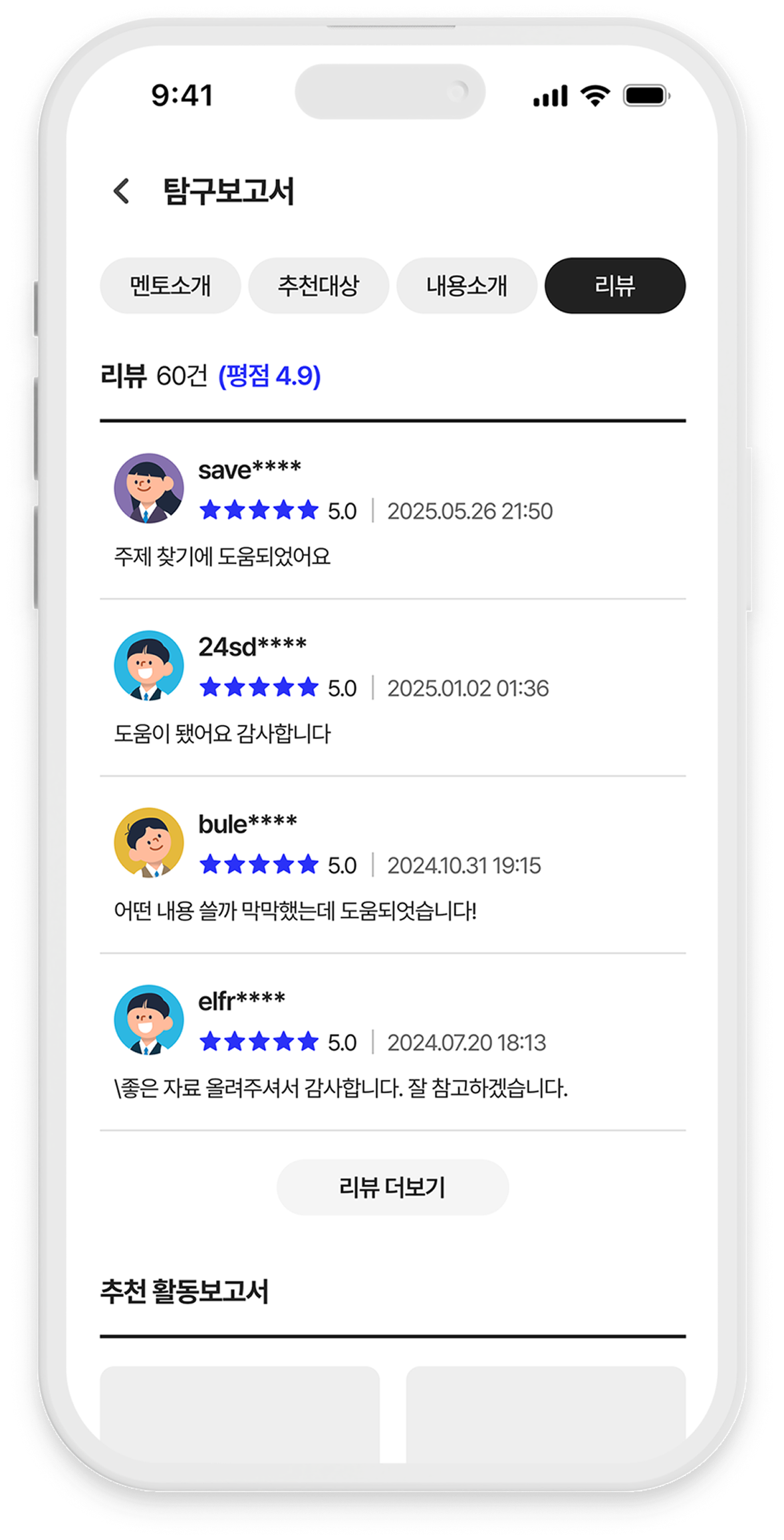 주제탐구보고서 자료도 다양하고, 멘토들의 조언도 정말 유용했어요!