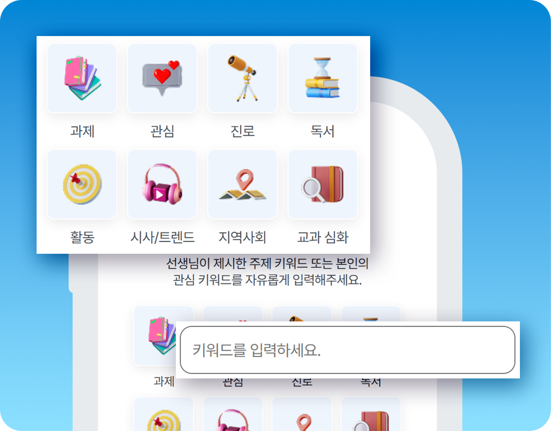 선생님이 제시한 키워드 혹은 자신의 관심 키워드를 자유롭게 입력해 주세요!