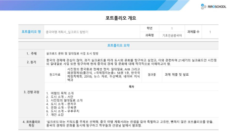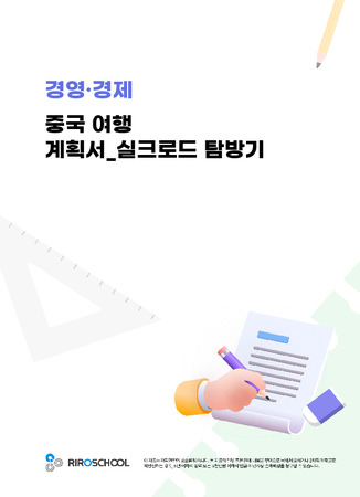 단순히 중국의 경제와 문화를 설명하는 게 아니라, 실제로 여행하는 기분이 들도록 고안한 계획서입니다. 학생부에 흥미롭게 녹여낼 수 있고, 중국의 경제와 문화를 동시에 탐구함으로써 중국에 대한 배경지식을 크게 쌓을 수 있었습니다. 해당 포트폴리오 자료로 학우들과 선생님 앞에서 발표함으로써 학창시절의 특별한 경험 또한 쌓을 수 있습니다.