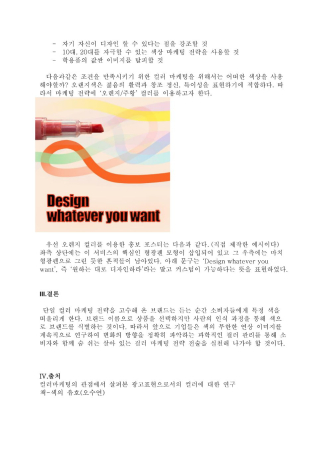경영학 분야중에서도 마케팅에 조금이라도 관심이 있는 학생들에게 강력 추천드리는 포트폴리오 입니다. 컬러마케팅 개념공부 및 사례조사 뿐만 아니라 직접 상품을 구상해서 홍보물까지 제작한 특별한 활동입니다!