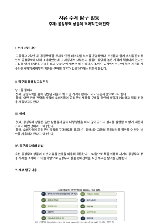 경영학과 진학을 희망하는 많은 친구들이 사회적 기업, 그린 마케팅, ESG 에 대한 관심도가 높을 것입니다. 공정무역은 사회적 기업과 땔 수 없는 중요한 개념입니다. 사회적 기업과 ESG에 관심이 많은 학생들에게 적극 추천하는 보고서 입니다:)