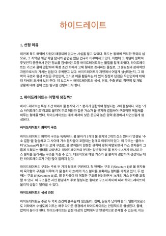 이번 포트폴리오는 '하이드레이트'라는 자원을 주제로 작성되었습니다. 과학 보고서 주제와 작성 방법에 대해 고민하는 학생들에게 적극 추천드리며 경영이나 경제와 전혀 관련이 없는 보고서이니 참고해 보시기 바랍니다!