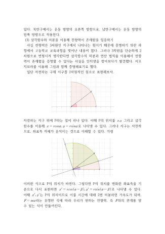 우선 탐구의 기반이 되는 책을 읽었습니다. 책 내용과 관련해 전향력이 무엇인지에 대해 간략히 설명 후 지오지브라라는 프로그램을 이용해 미적분을 이용하여 전향력이 존재하는 것을 증명하는 과정을 설명해줄 시각 자료를 추가하여 탐구 보고서를 작성했습니다.