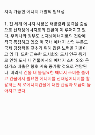 지속 가능한 에너지 개발의 필요성과 현주소에 대해서 썼던 자료 입니다.