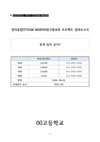 STEAM MAKER 1학년 진로관련 활동 보고서
