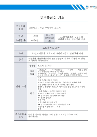 고등학교 1학년때, 드론과 수학의 연관성을 탐구한 저는 드론의 3차원 움직임에 벡터를 적용해 경로를 계산하고, A* 알고리즘을 접목해 최적화된 자율주행을 실현하는 과정을 경험하고 다익스트라와 A* 알고리즘의 장단점을 분석하며 이 보고서를 작성했습니다. 고등학교 1학년에 관점에서는 잘 작성한 거 같습니다. 그리고 이 글을 읽고 나면 어떤식으로 보고서를 작성해야 되는지, 궁금증을 하나하나 더해가고 해결하는 과정을 어떻게 꾸려야하는지 알 수 있습니다.