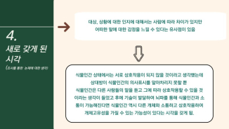 이 활동은 언어와 매체 시간에 '생명' 이라는 책을 읽고 주제를 선정하여 탐구를 진행하는 활동이었습니다. 책을 읽고 식물인간은 개체고유성이 있을까 라는 생각이 들어 주제를 선정하였고 생명과학에 관심이 있는 학생이라면 한 번쯤 생각해볼만한 주제라고 생각합니다.