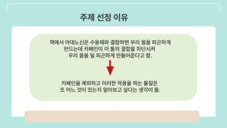 커피를 마시면 각성효과가 나타나는 이유가 궁금한 학생