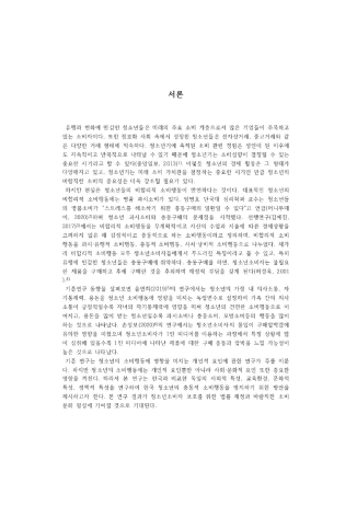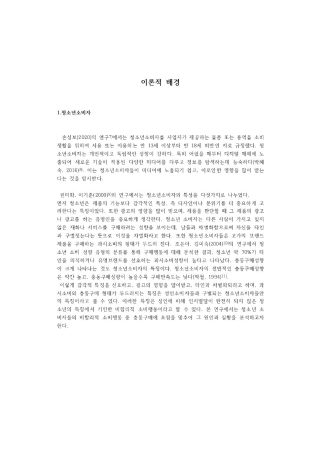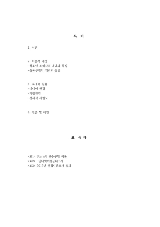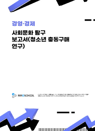 1. 서론 2. 이론적 배경(청소년 소비자의 개념과 특징, 충동구매의 개념과 종류) 3.국내외 현황(미디어 환경, 가정 환경, 경제적 자립도) 4. 결론 및 제언