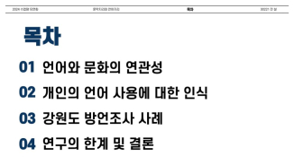 일주일에 진행한 것을 믿을 수 없을 만큼, 설문조사와 방언조사의 양과 질이 우수하며, 해당 탐구를 위해 무수한 자료를 숙독하였고, 매우 탁월한 생활기록부 기록까지 확보할 수 있었습니다.