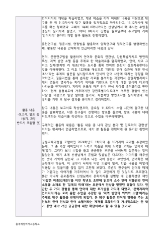 일주일에 진행한 것을 믿을 수 없을 만큼, 설문조사와 방언조사의 양과 질이 우수하며, 해당 탐구를 위해 무수한 자료를 숙독하였고, 매우 탁월한 생활기록부 기록까지 확보할 수 있었습니다.