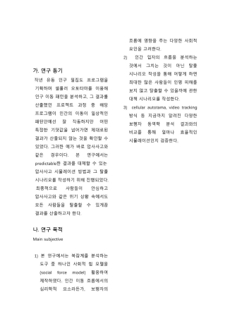 1. 군중사고 예방을 위한 보행자 동역학 시뮬레이션 및 탈출 시나리오 작성3p