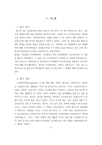 제 닉네임으로도 알 수 있듯, 저는 고등학교 3년 내내 정치외교학과/학부 진학만을 꿈꾸고 살아왔습니다. 그러나 보니 1학년 때도 정치학에 관한 내용을 주로 다뤘고, 학술제에서는 이를 바탕으로 정치학에 연관이 있지만 다른 사회과학분야를 아우르는 주제를 선정하고자 했습니다. 그렇게 고민 끝에 나온 소재는 '프로파간다'였고, 정치학은 물론 심리학이나 언론미디어까지 아우르는 보고서를 써내고자 노력했습니다.