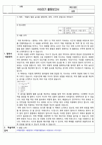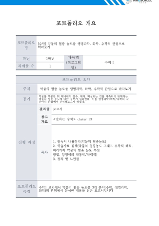 수학1 교과에서 약물의 혈중 농도를 3개 분야(수학, 생명과학, 화학)의 관점에서 분석한 내용을 담은 보고서입니다.