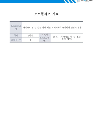 본 포트폴리오는 기존의 실제 우리나라 법률을 직접 분석하고, 그 중 관심 분야(생명과학, 약학)과 관련된 법률의 내용을 연구자의 측면에서 개선하고자 하는 부분을 법률 조항으로 만들어 작성한 제안서입니다. 제안한 법률 내용이 참신하고 논리적이기 때문에 관련 활동을 구상할 때 참고하면 좋을 것이라고 생각합니다.