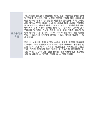 높은 평가를 받았던 보고서이니만큼, 언론과 인공지능 분야를 포함해 다양한 학문 분야와 연결 지을 수 있는 점에서 큰 장점을 가지고 있다고 생각합니다. 특히 언론, 미디어, 정보과학, 인문사회 계열 학생들이 이 보고서를 참고하여 확장해 잘 활용하셨으면 좋겠습니다. 추가로 탐구하면 좋을 주제들도 작성해 두었으니, 탐구역량과 전공적합성에 부합하도록 생기부 구성하는 데 많은 도움이 되길 바랍니다!
