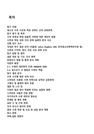 특히 수면의 질이 좋을수록 **전두엽 기능(집중력, 계획, 감정 조절 등)**이 강화되고, 이는 학습 효율 및 스트레스 대응력에 긍정적 영향을 미친다는 뇌과학 논문을 분석하며 보고서의 이론적 기반을 더욱 탄탄히 구축했습니다.