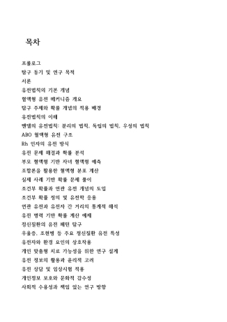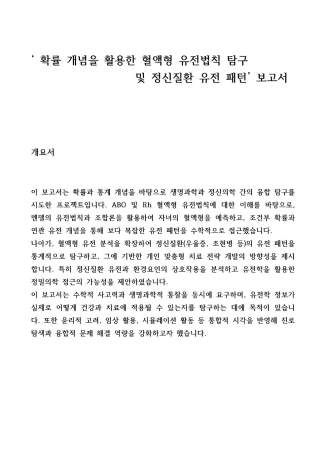 혈액형 유전 메커니즘을 확률과 멘델 유전법칙으로 분석하고, 이를 기반으로 정신질환(우울증, 조현병 등)의 유전 패턴까지 확장해 보았습니다.