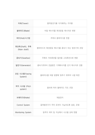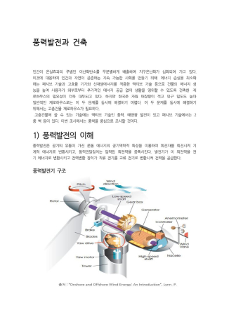 첫째, 풍력발전에 대한 개요를 다룬다. 이 장에서는 풍력발전의 정의, 작동 원리, 발전기의 종류 및 설치 방식 등을 설명한다. 풍력발전의 역사와 현재 기술 수준에 대해서도 간략히 소개한다.