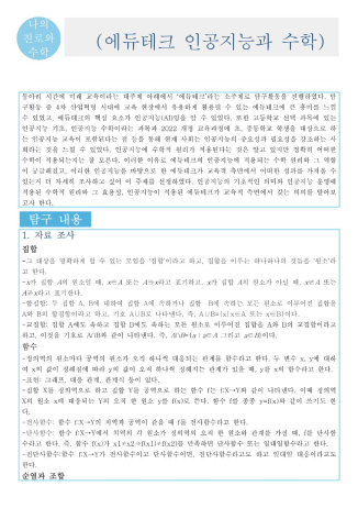 이번 포트폴리오는 어떤 주제로 수학 보고서를 써야할 지 고민하고 있는 교육 계열 학생들에게 도움이 될 것이라고 생각합니다.