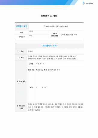 사서라는 진로에 맞춰서 조사한 인물 조사하기 보고서로, 많이 알려진 사람은 아니지만, 한국 도서관계에서 공헌을 세운 '엄대섭'이라는 인물에 대해 조사하고, 이에 따른 조사 보고서입니다.
