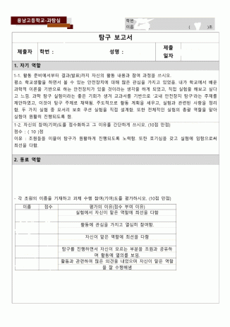 교육 계열 희망 학생들이 학교에서 직접, 쉽게 해볼 수 있는 과학적 탐구 내용을 담은 보고서입니다.